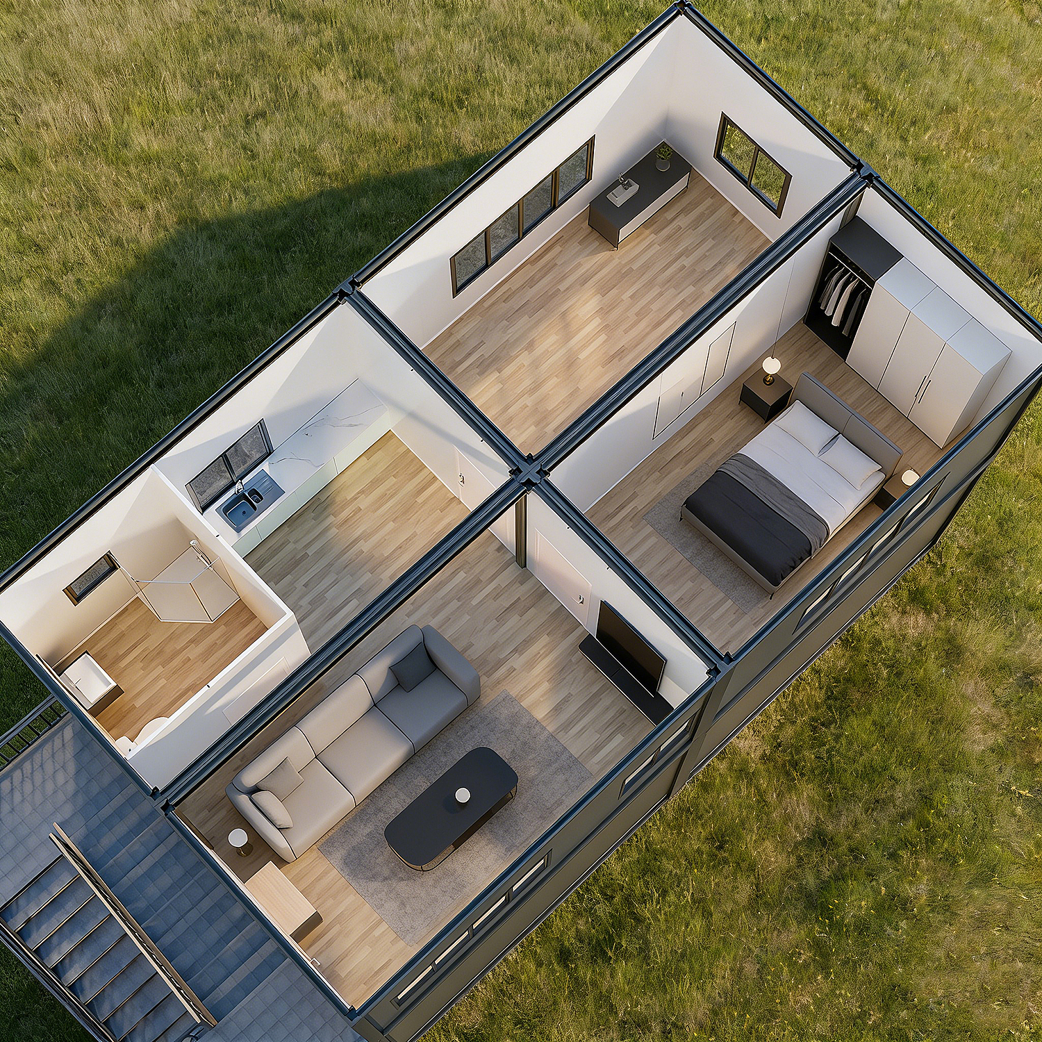 Casas contêineres podem servir como residências, escritórios, dormitórios para funcionários ou como lojas, casas de férias e alojamentos temporários.